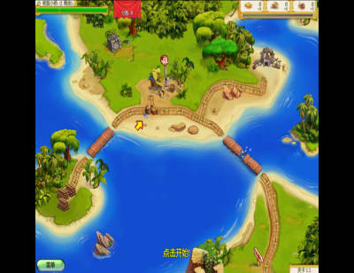 鼠标点击操作,开发农场,木材加工厂,收集金币,通过清理树木,修理道路,重建桥梁、以及被毁坏的各种建筑,根据游戏提示逐个的开发建设。