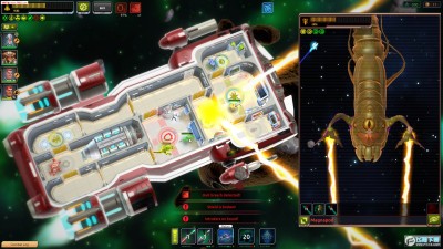 游戏玩法与《超越光速》相似,控制飞船在大地图上进行移动,进入战斗时要先破坏敌人的护盾,其次破坏武器系统,接下来就可以轻松的消灭敌人了,碰到宇宙中的异形Boss是要小心操作,尽量派人到护盾仓维护护盾,飞船要适当升级回避系统。