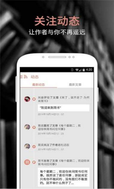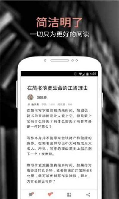 简书官网app是一款写作阅读类软件,在这里你能找到优秀的作品与作者。集合了杂文时政、小说诗歌、电影评论、科技新闻等,界面非常简洁,采用笔记本架构和多文集管理,其首页有文章、文集和作者的推荐。