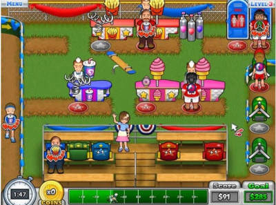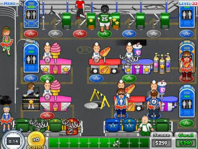 忙碌的豆子大叔:中场休息快餐店是Gold Sun Games发行的一款模拟经营(时间管理)类游戏,在游戏中Blunderton小镇被授予“年度最差体育镇”的称号,当地居民都情绪很低落。Beatrice发挥她的聪明才智拯救这个城市。游戏有着众多的关卡与成就等着你来夺取。游戏中包括5个不同的露天体育馆场景,以及数十个难度循序渐进的关卡设计,3种难度选择。运用赚取的金币可以修复体育馆或添加更多的设施。在《体育场快餐店》中,你将感受到活力的气息和快节奏的游戏乐趣。