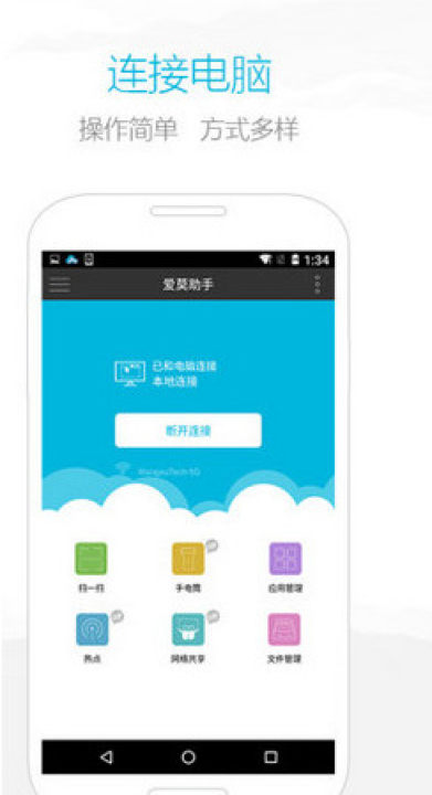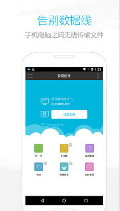 爱莫助手手机版是一款帮助安卓用户管理手机的手机软件。用户可以通过此软件轻松实现手机、平板与电脑间数据互传,支持无线大屏演示安卓手机屏幕画面,无痕服务,安全放心。