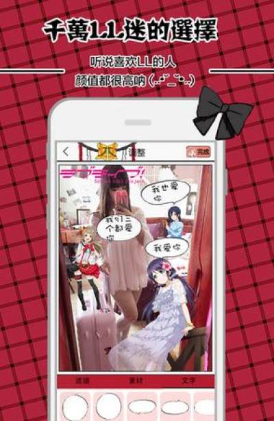 “LoveLive动漫相机”是一款LL主题的创意摄影APP!致力于打造出最IN最有趣的LL特效相机!内置高能动漫贴纸,创建你自己的偶像时代!千万LL粉的选择,你还等啥呢