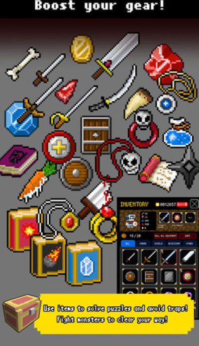 《立在地下城的墓标官方正版手游》是一款以像素地下城为游戏背景的冒险动作手游,游戏中玩家将会跟随像素小人来到一个有着魔幻唯美的像素地下城中,而你们在地下城中将会展开属于你们的探索和怪物作战的冒险之旅,并且在冒险之旅中你们还要收集沿途散落的金币和钻石,以此来解锁更多的道具和装备!