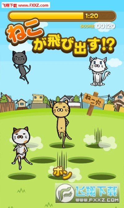 《猫洞最新官方正版手游》是一款以猫咪为主角的敏捷趣味休闲手游,游戏中玩家将会来到有着不同风景的唯美郊外,而你在这些画面中要做的就是通过点击手机屏幕来将游戏中不断从地面洞穴中窜出来的猫咪的全部抓住,游戏的玩法操作虽然简单,但是想要持续不断的闯关可就没那么容易了哟,因为在你抓猫咪的时候还会时不时的窜出一个大叔,一旦你抓住大叔那么游戏的时间就会缩短!