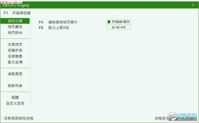 确定你处于“选项/特性”菜单中,开启该功能,填入面补ID,点击”自创球员 外观“,进入以后可以看到效果,退出保存。很重要 保存完毕后,关闭修改器的这个功能。