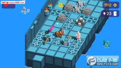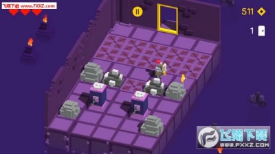 如同《天天过马路》一般,游戏中的角色也是蹦蹦跳跳在各种地牢中前进,只不过他面前的危险可不是疾驰的汽车,而是各种机关陷阱和四处游弋的怪物,扫清这些东西就可以顺利前进了。游戏地图是非常常见的地牢风格,玩家控制的角色在充满机关/怪物的地牢中以“一蹦一跳”的方式前行,而在这样简洁的画风下实则暗藏杀机!