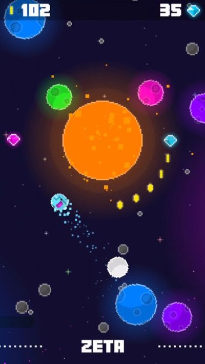 游戏的基本操作很简单,呆萌小球本身是自动飞行的,玩家只需按下屏幕的两个按键就可控制小球左右移动,以 Z 形的飞行轨迹向前移动躲避一路上的陨石碎片。随着飞船不断深入流行带中,碎片的密度会越来越高,难度增加后考验的是玩家们的眼力与指尖反应能力。另外,玩家还可通过收集游戏金币来解锁新的小球,使用各种各样的小球展开宇宙冒险之旅。总体的来说,游戏的画面色彩相当的艳丽抢眼,与黑色的大背景形成强烈的对比,且轻松欢快的游戏模式也很适合在空余时间玩上两局。