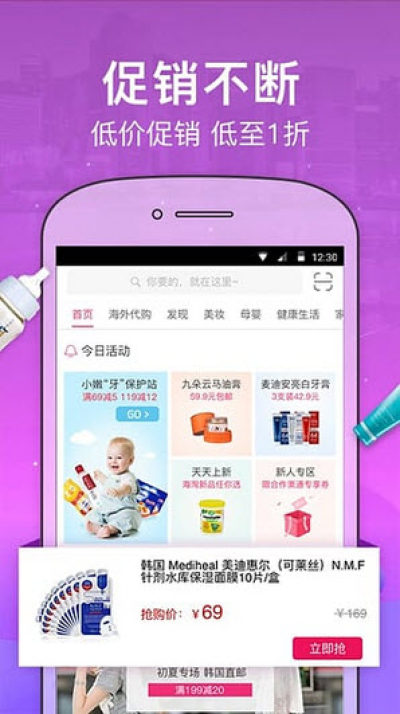 促销不断,低至1折,每天10点限时抢购。