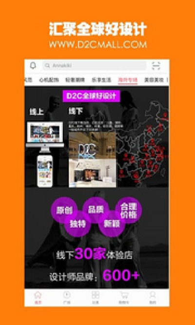 D2C App是专为时下潮人度身打造的移动购物软件,汇聚全球好设计,为消费者带来原创、独特、新颖、具有高品质和合理价格的好设计产品。现已签约世界600多位原创设计师,在售超过50000件潮流单品,包括女装、男装、鞋包、配饰、美妆、生活家居等多个品类。