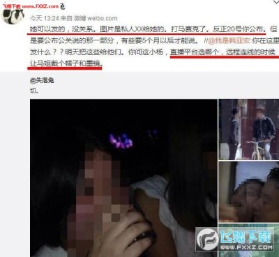 该微博原文称:她可以发的,没关系,图片是私人XX给她的。打马赛克了。反正20号你公布。但是你要公布公关说的那一部分,有些要5个月以后次才能说。然后转发的@我是韩亚宏的微博则称:你在这里发什么??明天把这些给他们。你问这小杨,直播平台选哪个。远程连线的时候,让马姐戴个帽子和墨镜。图为微博曝光的马赛克照片,其中长发男子看起来有点像是王宝强啊,细思极恐,这是准备黑王宝强的节奏吗?