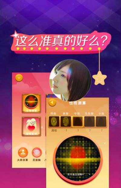 全球最热门的指纹测算应用,简单快捷又准确,可以快速检测你的指纹状况,为你分析性格、感情,还可以检测出你的另一半。