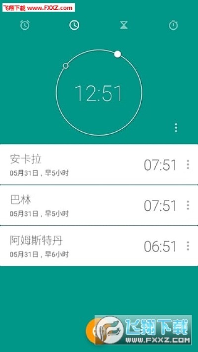 简约明亮的设计风格,内建闹钟、世界时钟、计时器及码表,操作简单直觉,快来使用吧!