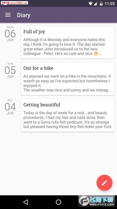 每日日记随时随地记录你的心情,随手记一记,适合小清新使用,它的界面非常简洁漂亮,记录非常简单,还可以同步上传到QQ等社交软件,有需要的可以下载。