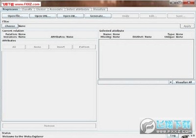 3、数据创建完成后,就可以开始创建我们的回归模型了。启动 WEKA,然后选择 Explorer。将会出现 Explorer 屏幕,其中 Preprocess 选项卡被选中。选择 Open File 按钮并选择在上一节中创建的 ARFF 文件。
