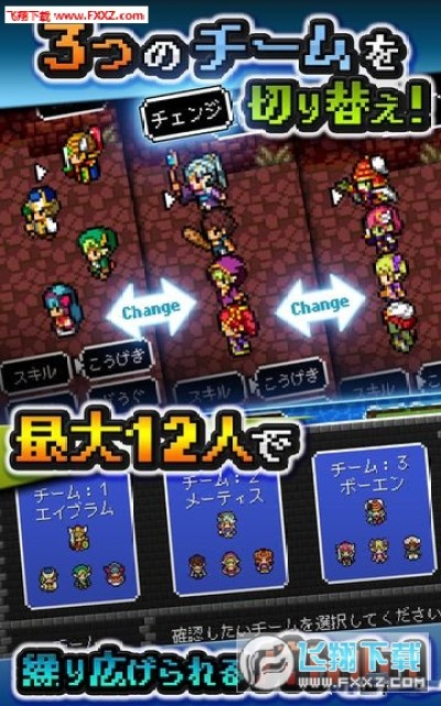 游戏中,玩家可以收集各种小伙伴,每个小伙伴都有各自不同的专属技能,另外,还可以通过转职来改变外型与战斗力。在战斗方面,玩家们可以从众多登场人物职业中挑选出十二名伙伴加入队伍,并利用这十二名伙伴来分别组成三支小队一起冒险战斗,并在战斗中自由切换这三支小队来对抗强敌参与战斗。