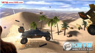2、屏幕上有三个按钮,左边是发射子弹,右边有两个按钮,下面的是油门,上面的是加速行驶;