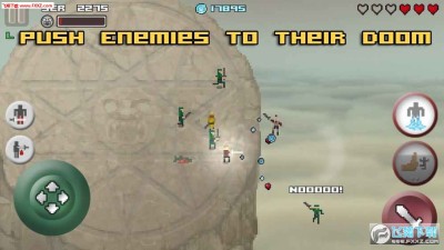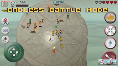 游戏的操作很简单,屏幕左边是虚拟摇杆,用于控制马赛克小人的移动,右边有攻击键,人物的普通攻击就是平砍,你一刀我一刀~被敌人攻击中会减少一滴血,而我们的勇士在杀死那些奇怪的敌人后会掉落能量和血滴,拟人化!:你要是不快点捡起人家,人家要消失了啦。能量是这个世界中的货币,是用来购买技能和强化人物的血量或者盾牌等一些强化能力,在试玩了一会我是感觉到这个游戏很是考验操作走位能力和出剑的实际,你丫的想硬拼的话,绝对是会死在乱剑之下,之剩下一摊马赛克!就像魔法师,你穷追猛打得不到好结果,分分钟被我大法师风筝致死,但是不优先解决像弓箭手和魔法师这类远程攻击的敌人,死的会更惨,所以说怎么打怎么生存都是要考虑的问题。