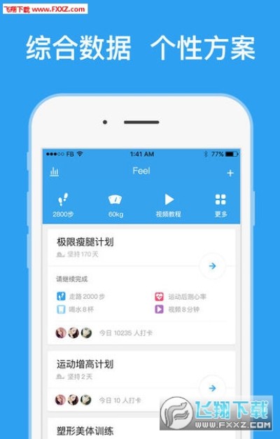 Feel app ios版准确来说之一款健身应用,无论你是想健身,减肥,还是塑身都能在feel上找到最合适你的减肥方法,综合数据,科学分析,为你的健康之路找到最科学的走法,feel app还提供社区服务,让一起健身的人交流,很贴心的哟!