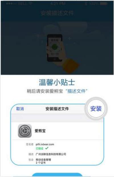 爱熊宝孩子端iphone版是一款能够与爱熊宝家长端进行互动的应用软件,家长版需绑定孩子版才可以正确使用,爱熊宝的禁网功能受到众多家长的青睐,在设置—通用—设备管理中可以选择绑定设备,需要的小伙伴们快来试试吧。