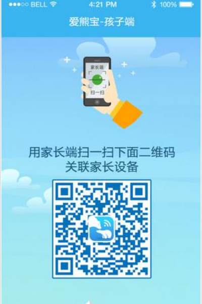 此为爱熊宝孩子端,安装在孩子手机上。同时需在家长手机上安装家长端,用家长端扫描孩子端绑定,即可为孩子制订上网计划。,