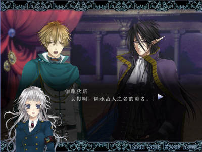 游戏主题界面很华美,操作也简单。主题音乐更是不用说了,也是相当的好听。而且通关后去event 看看,还添加了情人节附赠的情节。剧情很萌,尤其是魔王大人的。不过,为什么只有魔王的附赠情节里有新的CG饿!可怜的骑士和大臣都没得饿,全以立绘替代。这游戏的立绘也很好玩 。