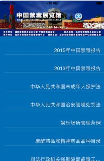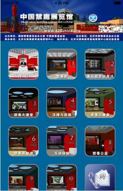 中国禁毒展览馆,是由国家禁毒委员会办公室与中国禁毒基金会主办,北京市禁毒委员会办公室协办,全国30余个省市禁毒办参与、北京市禁毒教育基地设计制作的,具备独立域名的交互式多媒体、多功能大型网上数字展览。在国家禁毒委员会办公室、中国禁毒基金会指导“中国禁毒数字展览馆”设计并开发了小学、初中、职高、高中“禁毒知识”在线答题系统,为方便全国广大青少年更好的参观,开发了中国禁毒数字展览馆app手机版,。此次“中国禁毒数字展览馆”利用大数据统计再度研发了“评估测试系统”为禁毒预防教育绩效参评迈出了重要的一步。