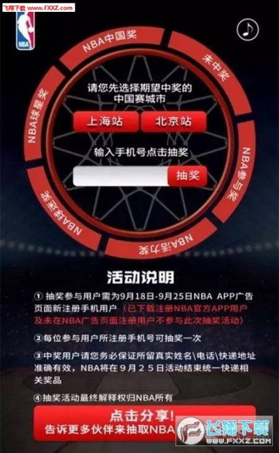再过几天就要到NBA中国赛了,国内球迷最喜欢的火箭队将与鹈鹕队在上海和北京各打一场比赛,为了感谢中国球迷这些年来对NBA的支持,NBA官方特别推出了免费门票抽奖活动,只要下载NBA指定的官方手机客户端就可以进行免费抽奖,想看NBA中国赛的朋友快来试试运气吧!