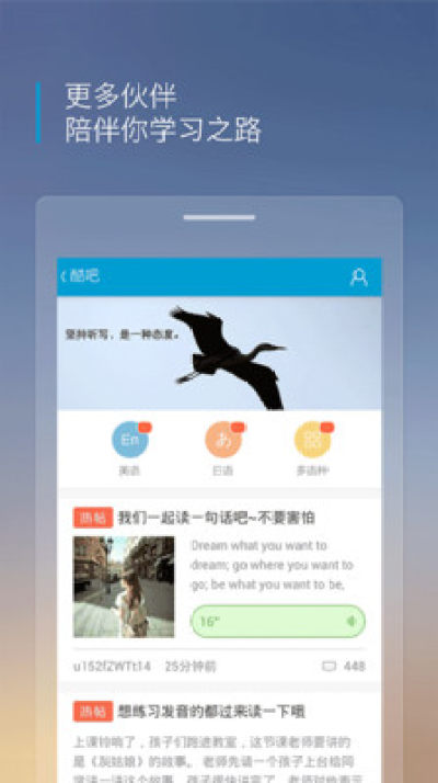 3、炫酷复读功能:轻轻一点,让你的Android手机变成外语复读机,AB循环,直到听懂为止;
