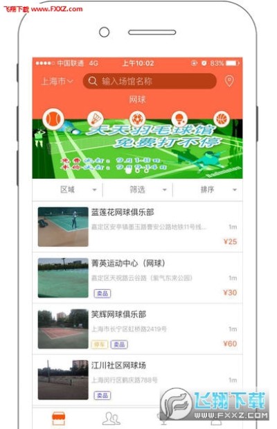 平台已入驻包括上海、南京、苏州等多地区超过上千家场馆,运动项目包含羽毛球、网球、篮球、乒乓球、游泳、足球、桌球、轮滑、壁球、攀岩等多种多样;基于LBS定位系统快速查找您附近的运动场馆,就近为您推荐运动场馆,比价订场,随时随地拥有运动健康生活!