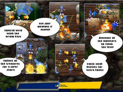 甲虫历险记2是一款画面精良的游戏,玩家扮演一名甲虫在地下迷宫的历险,前方不仅有巨石的阻挡,更有凶残的怪物需要你对付。需要玩家利用聪明智慧来巧妙的消灭他们。游戏的关卡设计非常巧妙,有些怪物消灭可以使用各种方法,也有很高的自由度,而打有些怪物就要靠仔细的判断了,否则最后用尽了炸弹可无法过关了。