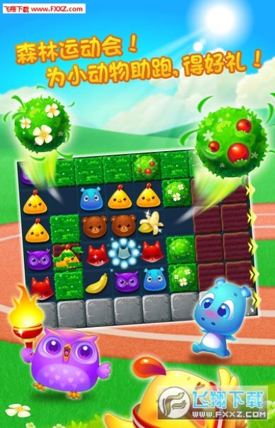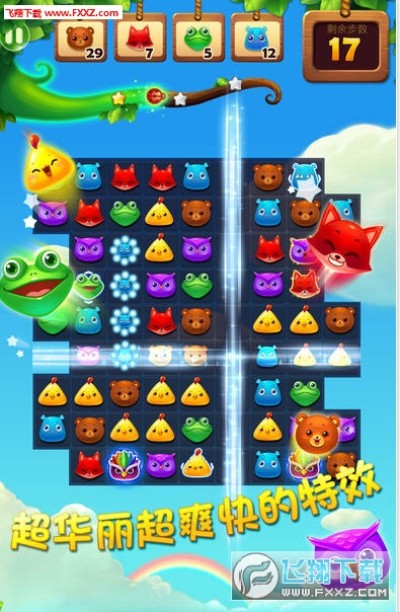 滑动手指让三个及以上的同色小动物横竖相连即可消除,完成每关的指定消除目标即可过关!
