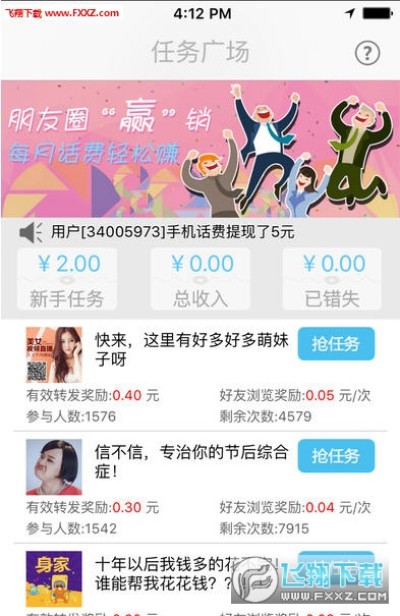 【日赚10元】30个以上任务等着抢,每天更新5个以上,轻松转发就能获利多多