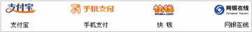 目前支付方式有:支付宝、手机支付、快钱、网银在线