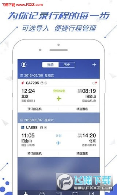 5.行程记录:航班信息自动导入,贴心管理您国内、国际的飞行记录,随时查看年度排名,与飞友一较高下。