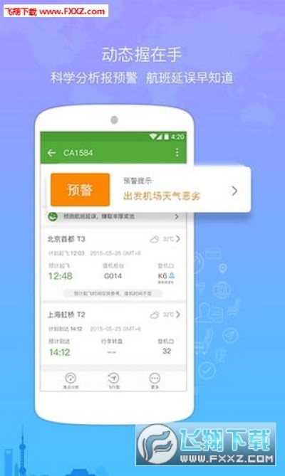 1.航班动态预警:航班动态全知道,延误预警早报告