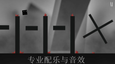 在游戏内玩家将操控着一个全身黑漆漆的小方块,白色的两眼看起来萌萌哒。背景画面也采用了时下流行的黑灰风格,不过其中的红色尖刺看起来十分刺眼,实际也十分危险。
