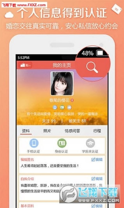 【个人中心】信息认证完整,由此杜绝咖啡托酒托,让您放心恋爱约会。