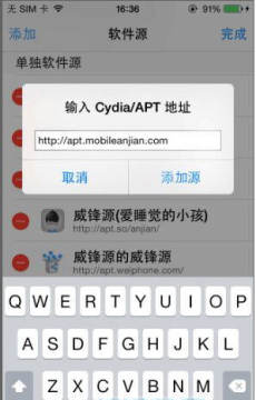 步骤:Cydia→软件源→编辑→添加