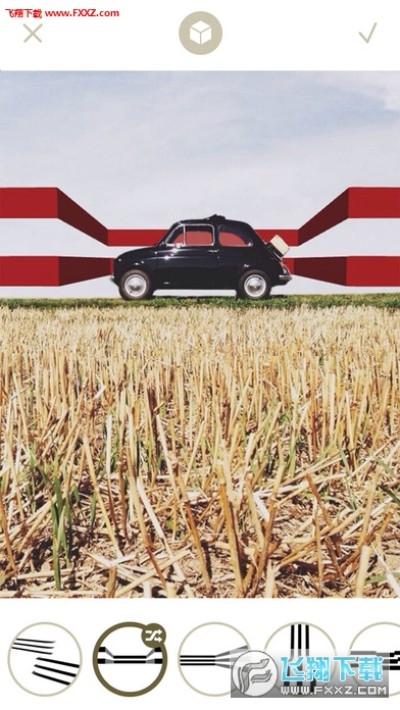 将普通照片转换成尖锐的风格,优雅的艺术作品与弯曲的三维图形条纹和丝带,你可以缩放,旋转和位置在你的照片。
