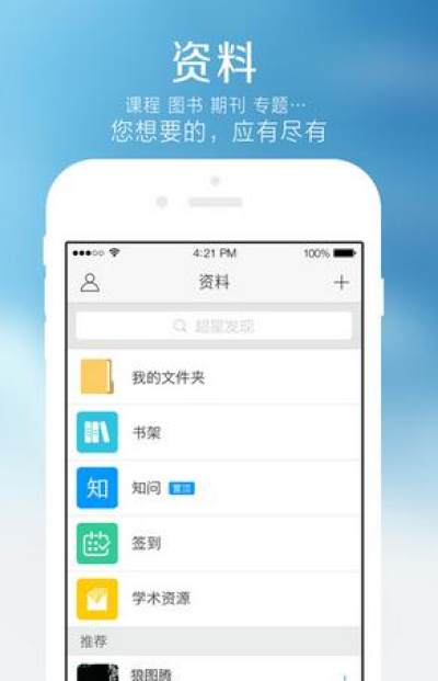 超星客户端是面向智能手机、平板电脑等移动终端的移动学习专业平台。用户可以在超星客户端上自助完成图书馆藏书借阅查询、电子资源搜索下载、图书馆最新资讯浏览,学习学校专业课程,进行小组讨论,查看本校通讯录,同时拥有超过百万册电子图书,海量报纸文章以及中外文献元数据,为用户提供方便快捷的移动学习服务