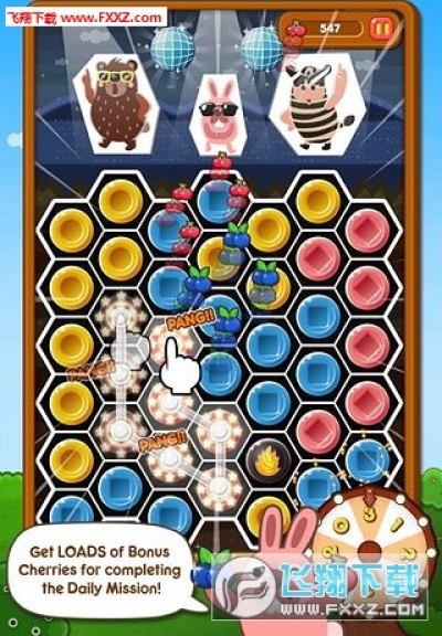 游戏讲述的是原本在大森林中有着幸福安详生活的小动物们,突然有一天森林外部来了以之非常凶猛残忍的怪兽,这只怪兽还会吐出腐蚀物理的液体,并且它在森林的外围不断的吐出液体毁坏树木与花草,于是小动物们就团结起来利用消除圆圈的方式弹出水果蔬菜,,将这只可恶的怪兽赶出了森林!