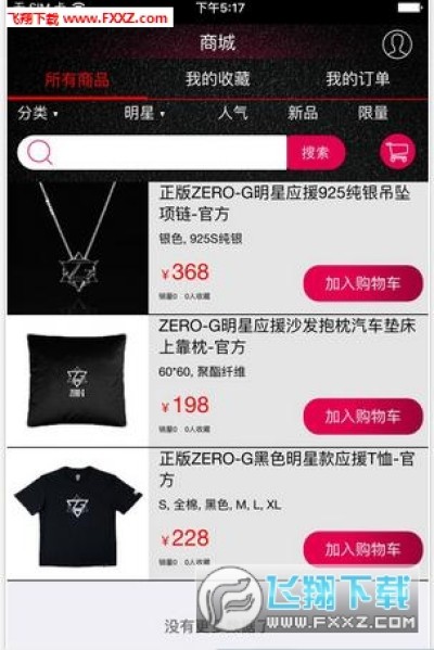 --各种正版ZERO-G明星应援产品(如:沙发抱枕、爱心毛巾等)、艺人周边(如:艺人马克杯、声援T恤衫等)、还有不定期的发售小剧场门票等实物商品,可供粉丝购买收藏。