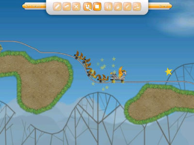 闯关模式看起来并不复杂,其实还是有难度。因为没有加速道具(自由模式里才有),过山车的移动全靠重力。