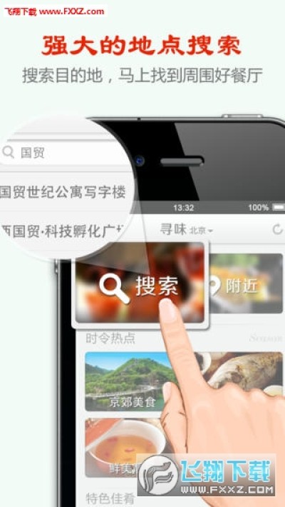 4.搜索:强大的地点搜索功能,只要输入目的地,马上找到周围的好吃餐厅。