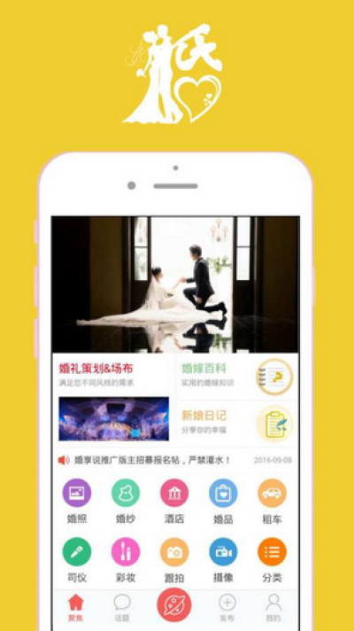 汇聚全国口碑商家结婚品牌,婚宴酒店、婚礼策划、四大金刚、婚纱摄影、婚纱礼服、婚车租赁、珠宝饰品、蜜月旅游等一站式惠购预定平台,完美婚礼一站备齐!让您在家即可解决您在婚礼筹备中遇到的一切难题,优惠、省心。