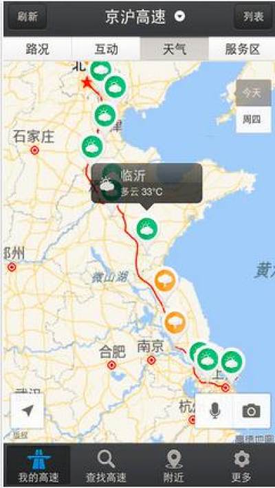 旅途沿线天气情况一目了然,不再苦苦研究卫星云图~