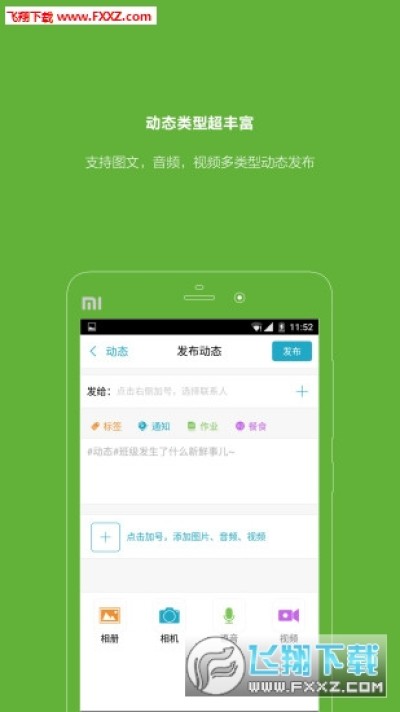 老师的工作压力,我们为您分担:轻化动态发布流程,可发送图片,音频和视频。增强教师管理权限,优化教师时间管理。