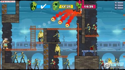 游戏的操作十分简单,点击屏幕,玩家就可以发射子弹进行射击,游戏发射子弹的时候,玩家可以看到发射轨迹以及反弹轨迹,这就让玩家可以一次性消灭更多的僵尸。玩家可以通过多次尝试找到最合适的发射路径以及反弹路径,去消灭更多的僵尸,完成任务目标。