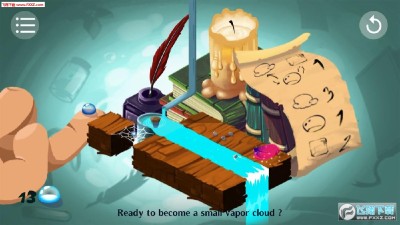 这是一款休闲移植游戏,玩家可以控制水滴在水滴、蒸汽、冰块三种形态进行切换,通过障碍,到达目的地。注意,无论是前进还是改变形态都会消耗水滴资源,资源有限,考验你的策略。