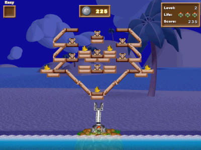 玩家必须利用特殊的夹具,夹住任何物品或是生物来攻击画面上方的猴子,猴子所站的横木也需要破坏,全部破坏掉便可以过关。游戏中玩家除了可以夹香蕉、猴子来攻击之外,画面中有时还会出现不同的物品或生物,当玩家能顺利夹住他们而来攻击的话,将会有特殊的效果。